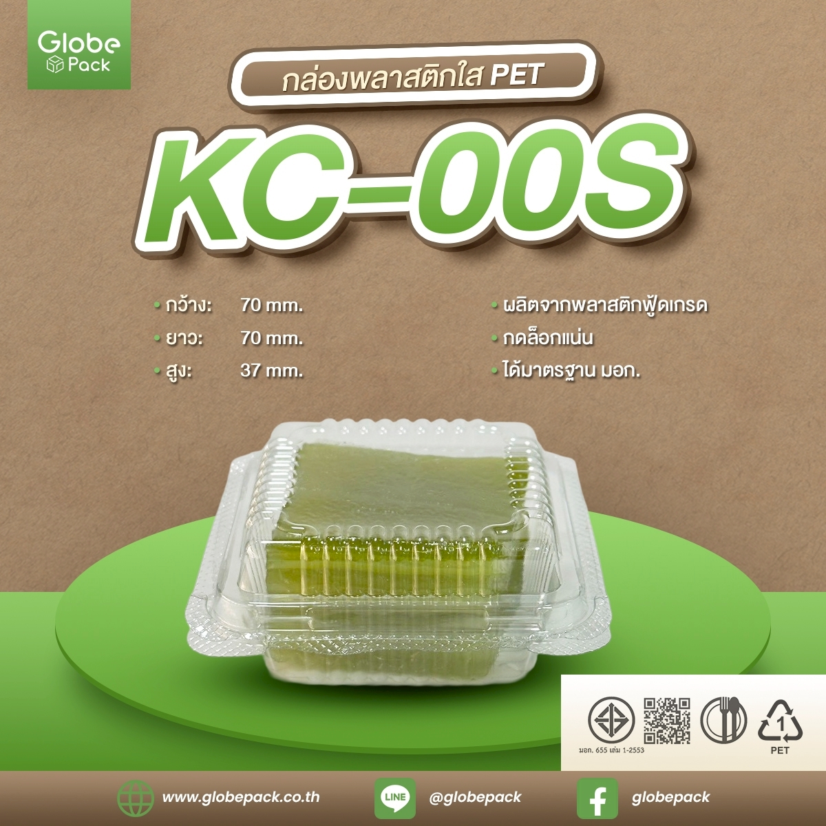 กล่องใส กล่องเบเกอรี่ PET KC-00s ฝากดล็อคได้