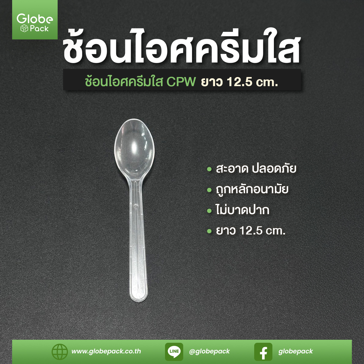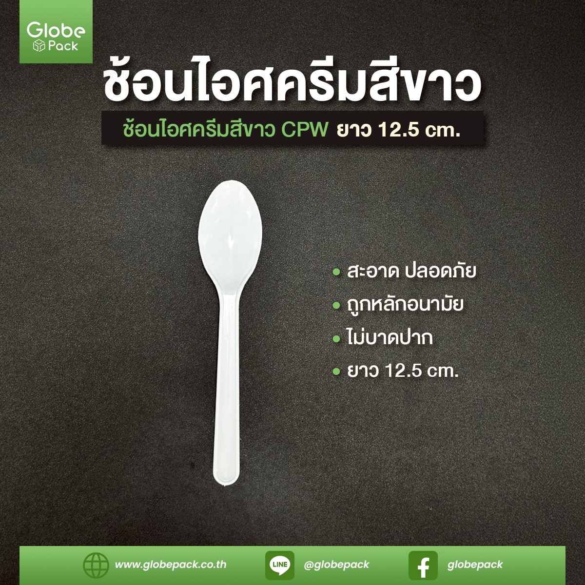 ช้อนไอติมรีน่า สีขาว / สีใส เกรด A ยาว 12.50 c.m. CPW