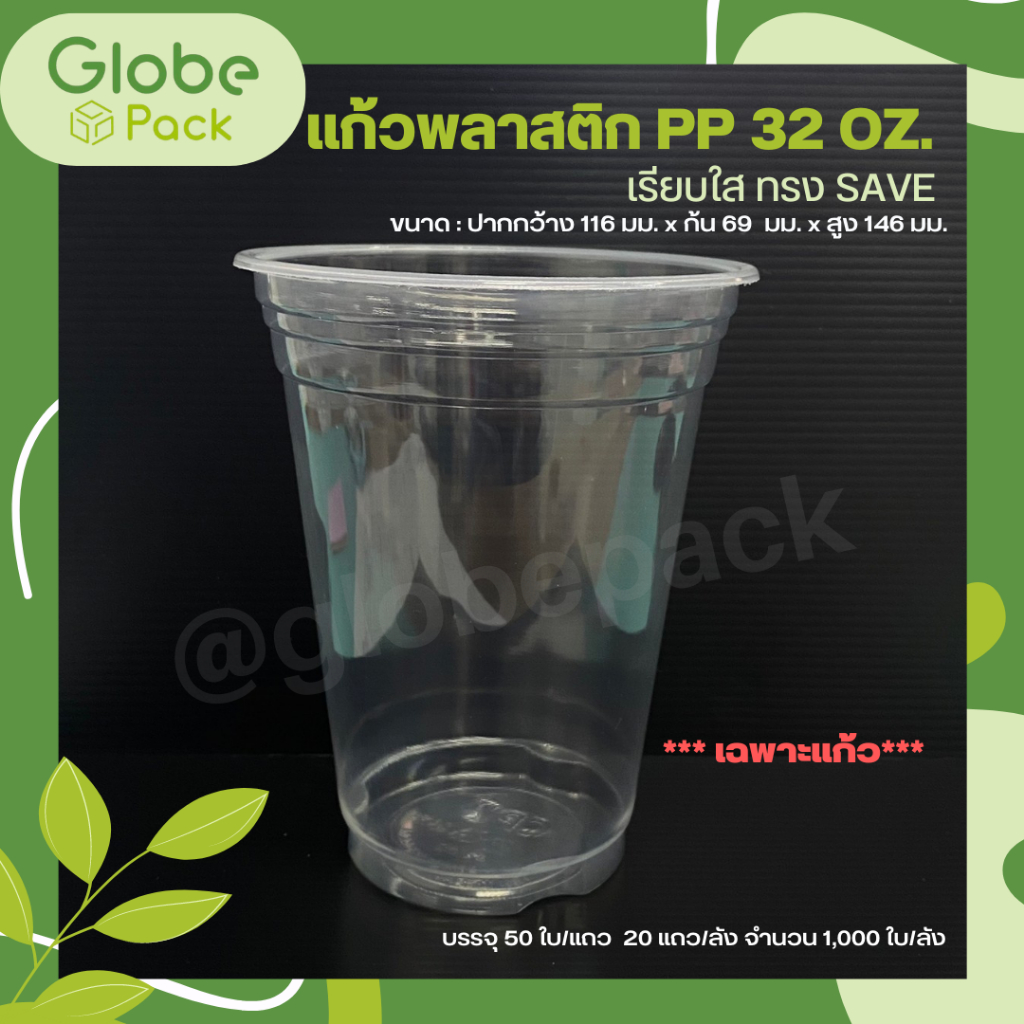 แก้วถังโอ่ง PP 32 ออนซ์ เรียบใส รุ่นมาตรฐาน ฉลากสีฟ้า ปาก 116 CPW *เฉพาะแก้ว*