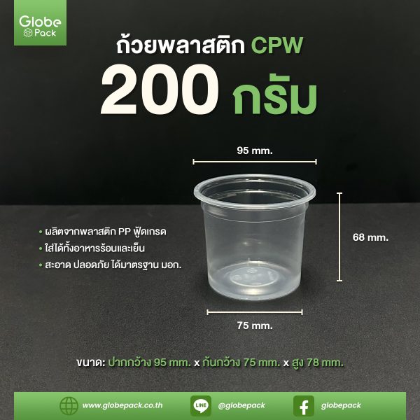 ถ้วยพลาสติก 200G. ปากกว้าง 95 มม. ตรา CPW
